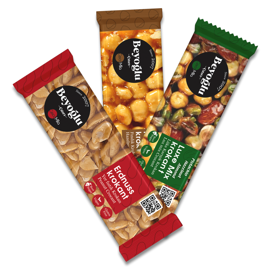 Beyoğlu Çıtırı & Coco-Mila‘da, fındık/meyve bar krokantları, sakızlar, gofretler, pamuk şekerler ve Türk lokumları gibi nefis ikramlar yaratma konusundaki uzmanlığımızı ve coşkumuzu bir araya getiriyoruz! Yarattığımız her ürün, tasarım konseptinden üretim sürecine kadar son derece hassas bir şekilde hazırlanmaktadır. Ürünlerimiz sadece glütensiz değil aynı zamanda vegan. Tatlandırıcı olarak doğal malzemeler ve pancar şekeri kullanıyoruz ve katkı maddeleri, koruyucular ve renklendiriciler içermiyoruz, bu da onları herkes için daha sağlıklı bir seçim haline getiriyor.